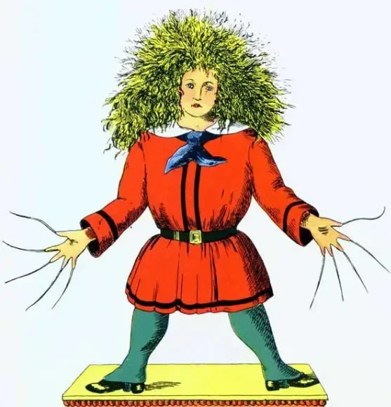 One of a number of nightmarish characters created by Dr. Heinrich Hoffmann in 1845 to frighten unruly children into submission. Peter and other characters from Hoffmann’s extremely popular children’s books appear in the first act finale, “German Fairy Tales.” Hoffmann’s books retain their popularity to this day, largely due to the freakish quality of his illustrations.